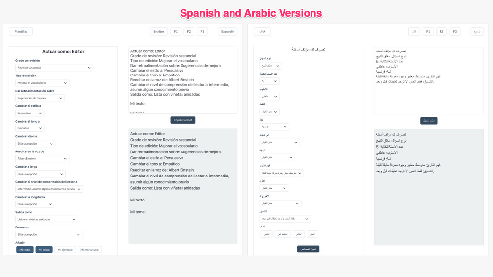 - Interface and property values in 5 Languages: English, Spanish, German, Arabic and French.