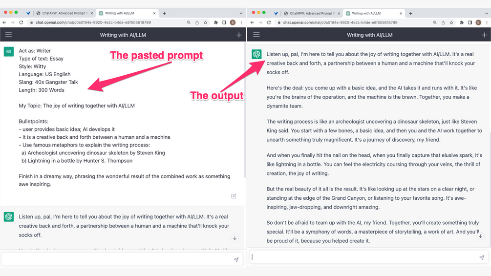 Write complex and effective prompts by combining prewritten prompt parts, similar to Lego blocks.